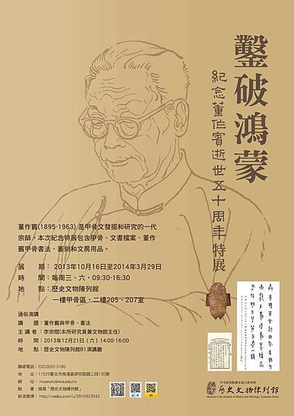 三、書法篆刻展:以董作賓生前知交為主軸,展示董先生甲骨書法作品約四十件。