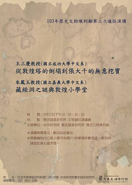 備 註:103年歷史文物陳列館第二次通俗演講