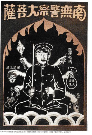 我怎麼樣也沒有想到千手觀音菩薩的形象,居然被日本人用在宣傳海報當中,拿來教育民眾警察的角色與重要性。