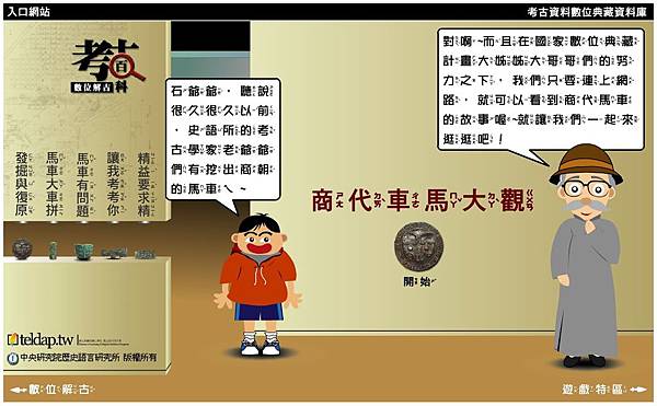 學生很喜歡考古百科裡讀者與網頁的互動。「數位解古」裡「商代車馬大觀」的部分,不但提供關於商代馬車的發掘、修復、保存及研究成果,更於「讓我考考你」的部分詢問讀者一些簡單的題目,避免「資訊單向流動」,而透過與讀者互動,便可加深讀者對剛剛所汲取資訊的認識。